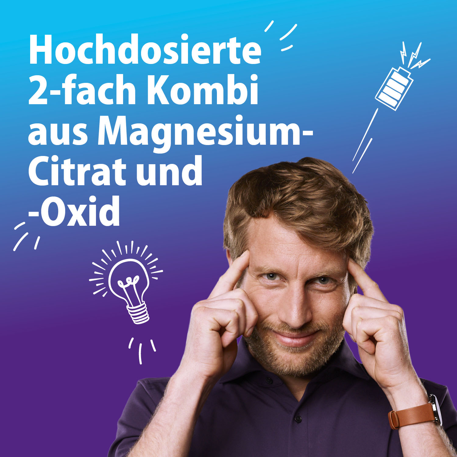 Magnesiumhydrogencitrat, Füllstoff Sorbit, Magnesiumoxid, Aromen, Trennmittel Magnesiumsalze der Speisefettsäuren, Süßungsmittel Sucralose.