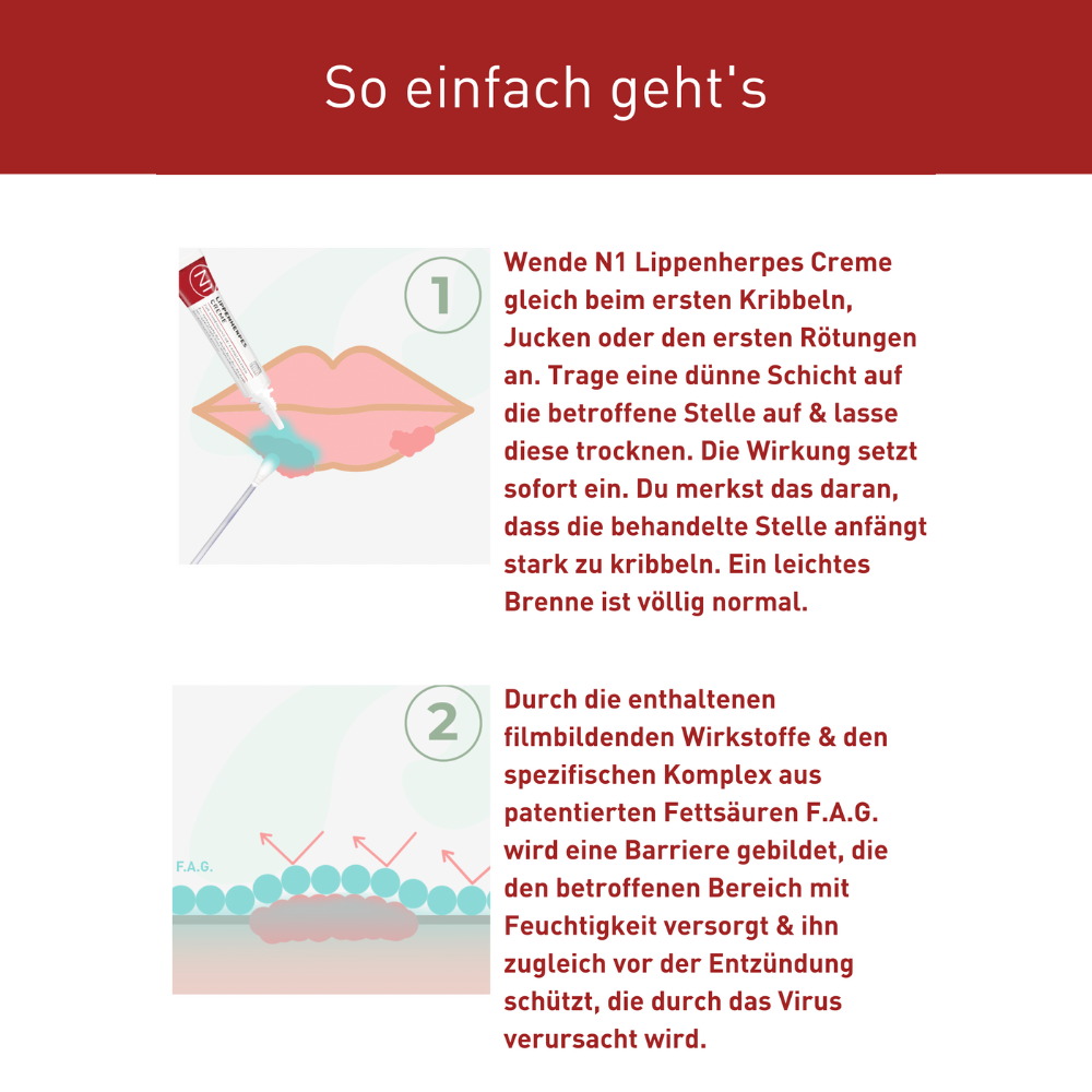 • Verhindert die Bläschenbildung und stoppt die Virenvermehrung