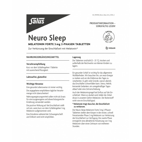 Neuro Sleep Melatonin 2-Phasen Tabletten Nahrungsergänzungsmittel mit Melatonin und pflanzlichen Extrakten