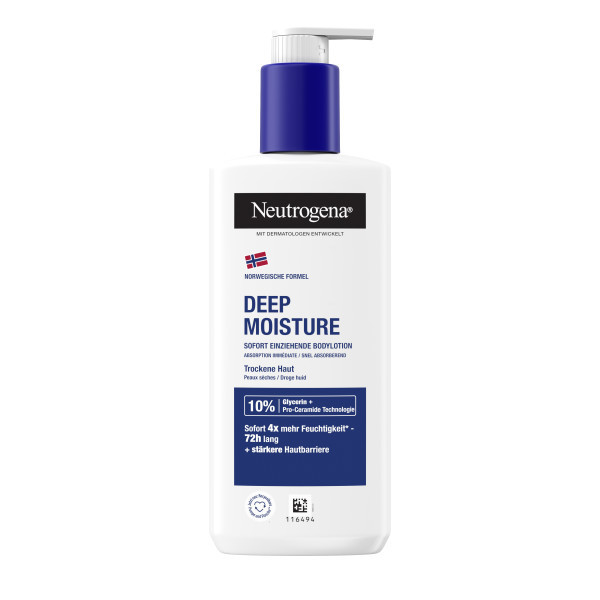 • Die besondere Neutrogena Deep Moisture Bodylotion für trockene Haut mit der norwegischen Formel stärkt die Hautbarriere & spendet sofort 4x mehr Feuchtigkeit* - für 72h intensive Feuchtigkeit. (*vs ungecremte Haut)