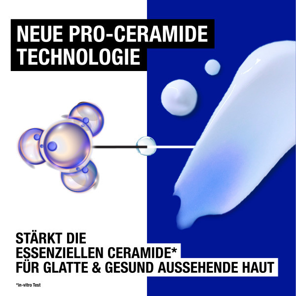 • Die NEUE Pro-Ceramide-Technologie der sofort einziehenden Körperlotion stärkt die essenziellen Ceramide der Haut, sodass 92% der Tester:innen ihre trockene Haut bereits nach der ersten Anwendung als weich, glatt und gesund aussehend empfanden***.