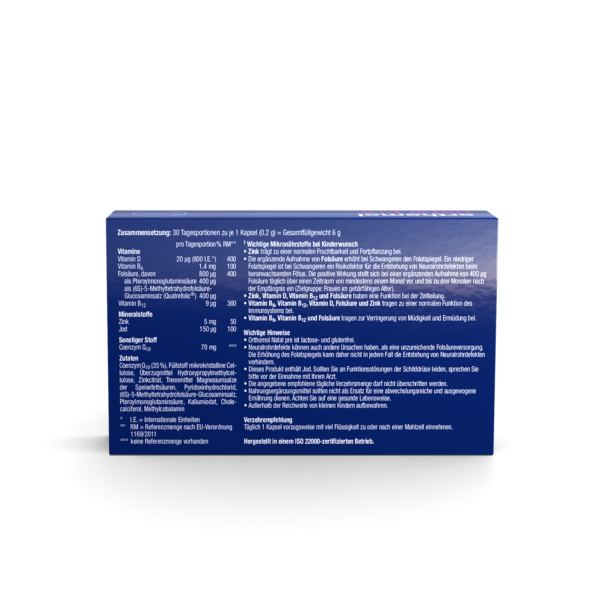 OrthomolNahrungsergänzungsmittel sind kein Ersatz für eine ausgewogene und abwechslungsreiche Ernährung und eine gesunde Lebensweise. Die angegebene empfohlene tägliche Verzehrsmenge darf nicht überschritten werden. Außerhalb der Reichweite von kleinen Kindern aufbewahren.