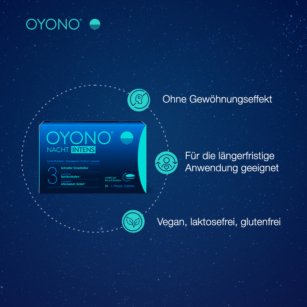 OYONO® NACHT INTENS – Die starke Unterstützung bei Ein- und Durchschlafproblemen mit 1,9 mg Melatonin