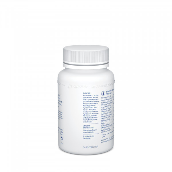 B-Vitamine sind wichtige Regulatoren und Aktivatoren im Stoffwechsel. So trägt z.B. Biotin zu einem normalen Stoffwechsel von Makronährstoffen (Fette, Eiweiß, Kohlenhydrate) bei. Bestimmte B-Vitamine, welche sich im Komplex synergistisch verhalten, sind auch an der Blutbildung und der Versorgung des Nervensystems beteiligt. Zudem haben B-Vitamine Einfluss auf die Erregungsleitung und die Regulation der Hormon-Aktivität*. Die B-Vitamine gehören zu den wasserlöslichen Vitaminen, werden im Organismus schlecht gespeichert und sollten deswegen regelmäßig zugeführt werden. B-Complex Plus von Pure Encapsulations® ist ideal dosiert und beinhaltet B-Vitamine in ihrer aktivierten Form!