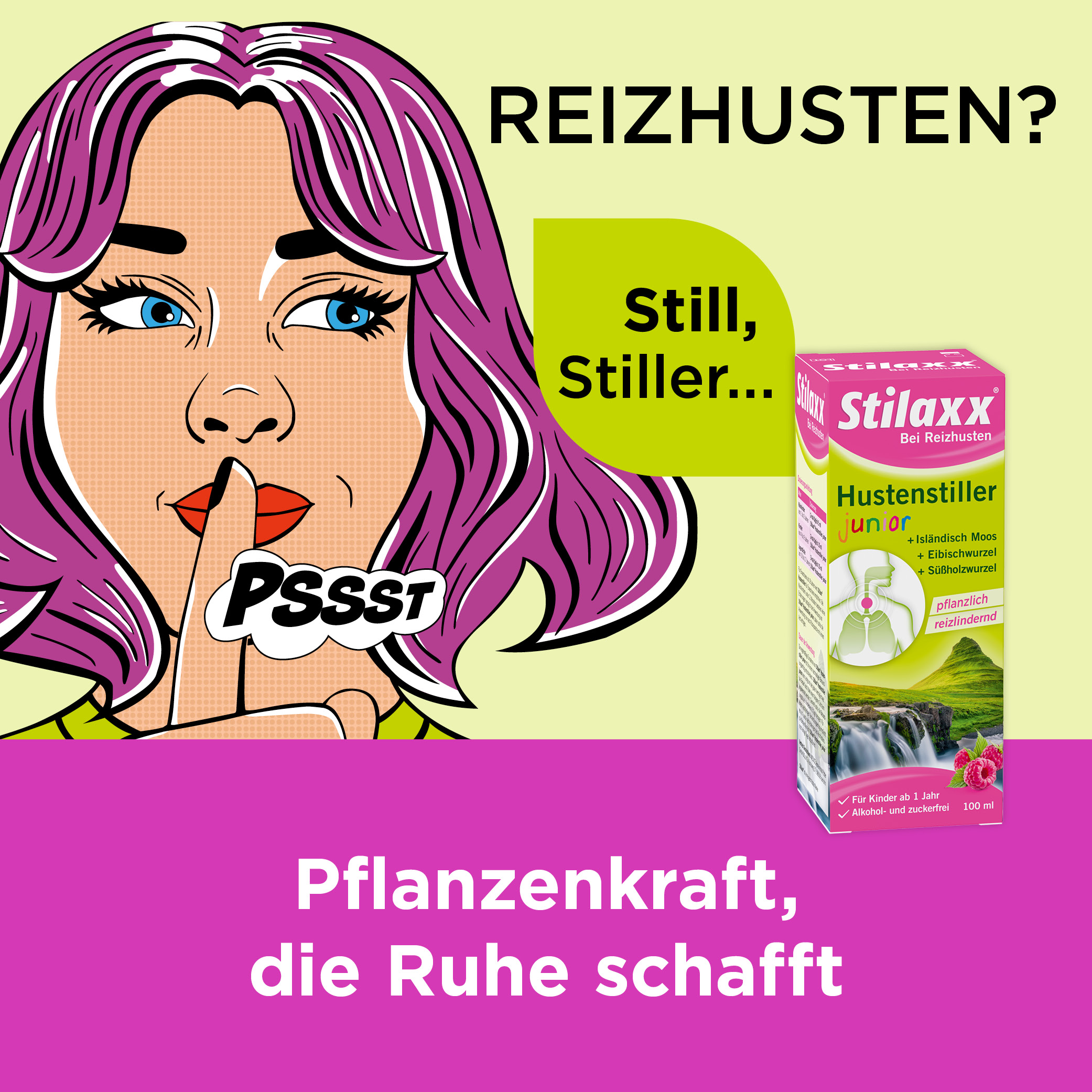Jetzt STILAXX Hustenstiller Isländisch Moos junior kaufen und GRATIS Stillaxx Pixi-Buch erhalten!*