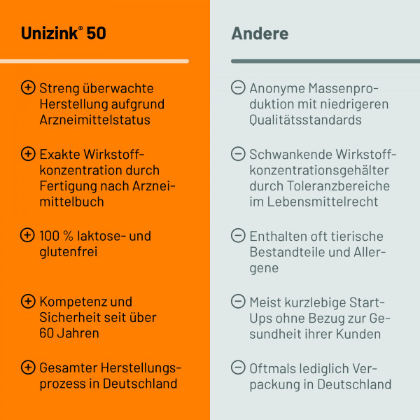 Unizink 50 ist in der empfohlenen Dosis zur Langzeitanwendung über mehrere Monate geeignet.