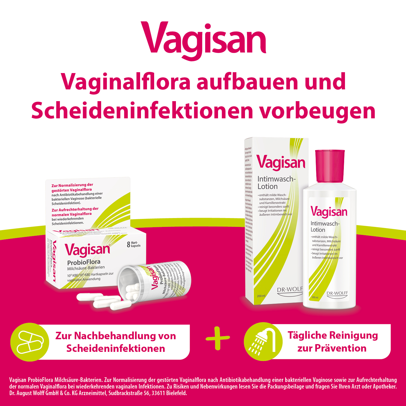 Herkömmliche Dusch- und Badepräparate können stark entfettende und hautreizende Waschsubstanzen enthalten. Deshalb ist die Verwendung von speziellen Produkten im Rahmen der Intimhygiene (z. B. Intimlotion zum Waschen) sinnvoll.