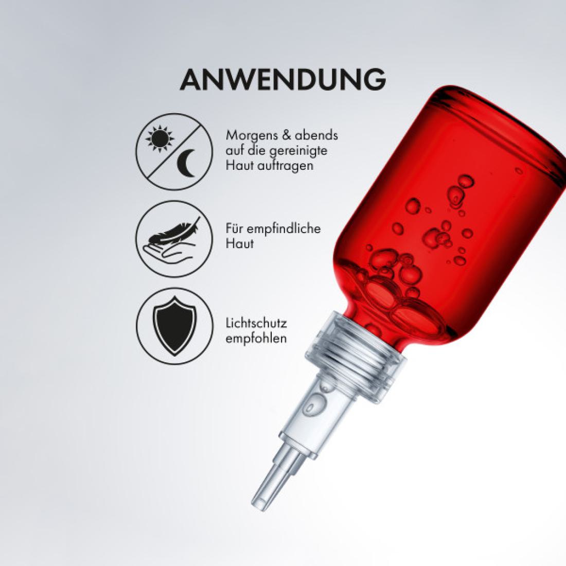 - Das Anti-Aging-Serum gegen Pigmentflecken und Falten basiert auf der wirksamen Kombination effektiver Aktivstoffe, um das Hautbild zu erneuern