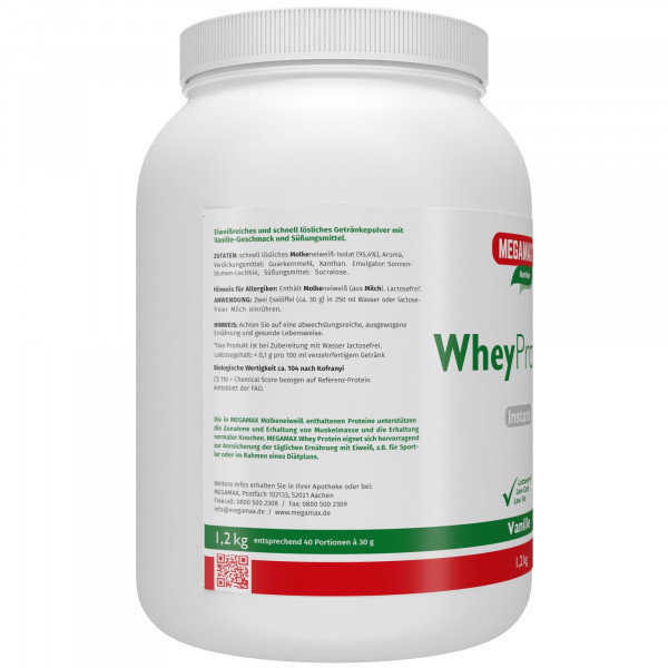Zwei Esslöffel (ca. 30 g) in 250 ml Wasser oder lactosefreier Milch einrühren und mit dem Megamax-Mixbecher ca. 30 Sekunden lang kräftig schütteln. Das Produkt ist bei Zubereitung mit Wasser oder Sojamilch lactosefrei (unter 100 mg Lactose pro 100 ml verzehrfertigem Getränk).