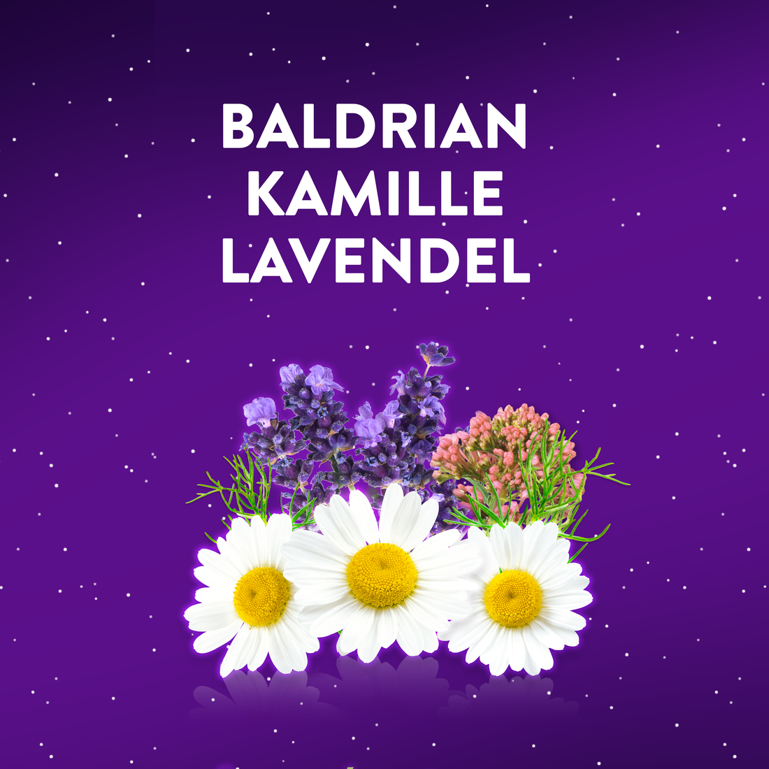 Außerdem enthält jeder Weichgummi Pflanzenextrakte aus Baldrian, Lavendel und Kamille sowie das Vitamin B6. Vitamin B6 trägt zur Reduzierung von Müdigkeit und Erschöpfung bei.